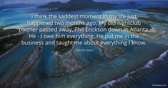 Dyke, Dick Van. (2026, January 14). I think the saddest moment in my life just happened two months ago. My old nightclub partner passed away, Phil Erickson down in Atlanta. He - I owe him everything. He put me in the business and taught me about everything I know. FixQuotes. https://fixquotes.com/quotes/i-think-the-saddest-moment-in-my-life-just-66107/