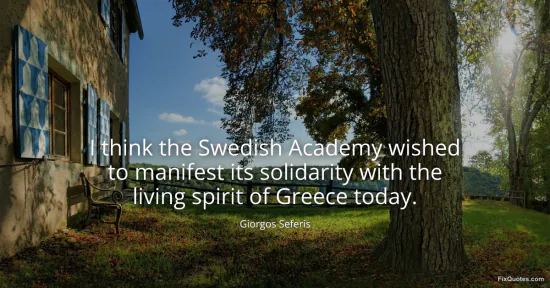 "I think the Swedish Academy wished to manifest its solidarity with the living spirit of Greece today." FixQuotes, 17 Jan. 2026, https://fixquotes.com/quotes/i-think-the-swedish-academy-wished-to-manifest-63716/. Accessed 13 Feb. 2026.