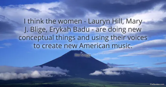 "I think the women - Lauryn Hill, Mary J. Blige, Erykah Badu - are doing new conceptual things and using their voices to create new American music." FixQuotes, 16 Jan. 2026, https://fixquotes.com/quotes/i-think-the-women-lauryn-hill-mary-j-blige-139516/. Accessed 25 Feb. 2026.
