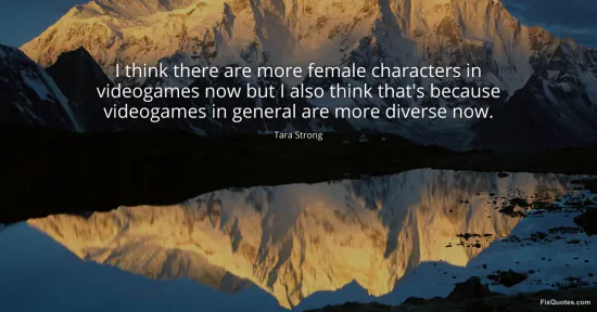 Strong, Tara. (2026, January 16). I think there are more female characters in videogames now but I also think that's because videogames in general are more diverse now. FixQuotes. https://fixquotes.com/quotes/i-think-there-are-more-female-characters-in-116887/