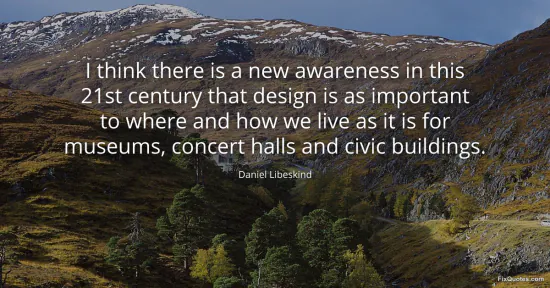 Libeskind, Daniel. (2026, January 15). I think there is a new awareness in this 21st century that design is as important to where and how we live as it is for museums, concert halls and civic buildings. FixQuotes. https://fixquotes.com/quotes/i-think-there-is-a-new-awareness-in-this-21st-150385/