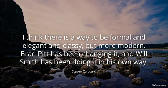 Cojocaru, Steven. (2026, January 15). I think there is a way to be formal and elegant and classy, but more modern. Brad Pitt has been changing it, and Will Smith has been doing it in his own way. FixQuotes. https://fixquotes.com/quotes/i-think-there-is-a-way-to-be-formal-and-elegant-151464/