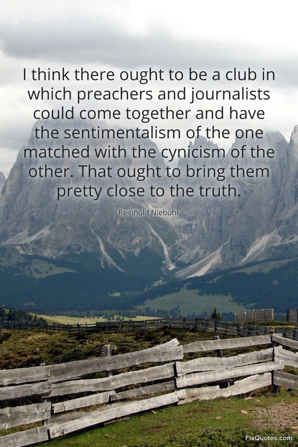 "I think there ought to be a club in which preachers and journalists could come together and have the sentimentalism of the one matched with the cynicism of the other. That ought to bring them pretty close to the truth"