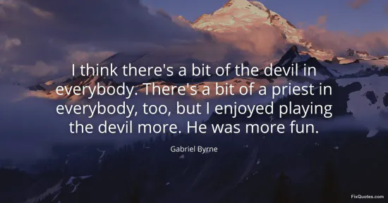 Byrne, Gabriel. "I think there's a bit of the devil in everybody. There's a bit of a priest in everybody, too, but I enjoyed playing the devil more. He was more fun." FixQuotes. January 17, 2026. https://fixquotes.com/quotes/i-think-theres-a-bit-of-the-devil-in-everybody-70791/.