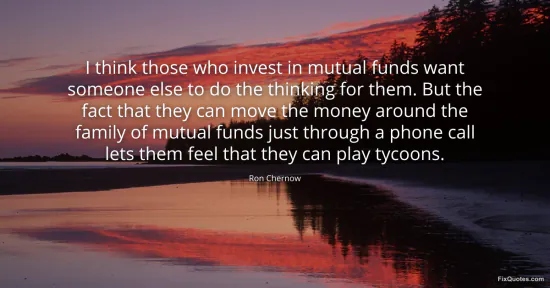 Chernow, Ron. "I think those who invest in mutual funds want someone else to do the thinking for them. But the fact that they can move the money around the family of mutual funds just through a phone call lets them feel that they can play tycoons." FixQuotes. January 15, 2026. https://fixquotes.com/quotes/i-think-those-who-invest-in-mutual-funds-want-161578/.