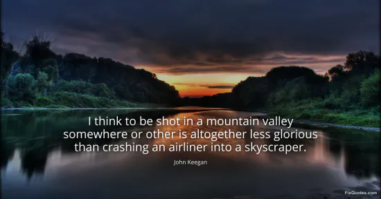 Keegan, John. (2026, January 16). I think to be shot in a mountain valley somewhere or other is altogether less glorious than crashing an airliner into a skyscraper. FixQuotes. https://fixquotes.com/quotes/i-think-to-be-shot-in-a-mountain-valley-somewhere-92514/