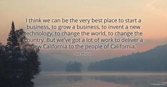 Whitman, Meg. (2026, January 16). I think we can be the very best place to start a business, to grow a business, to invent a new technology, to change the world, to change the country. But we've got a lot of work to deliver a new California to the people of California. FixQuotes. https://fixquotes.com/quotes/i-think-we-can-be-the-very-best-place-to-start-a-97312/
