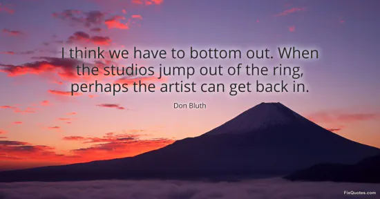 Bluth, Don. "I think we have to bottom out. When the studios jump out of the ring, perhaps the artist can get back in." FixQuotes. January 15, 2026. https://fixquotes.com/quotes/i-think-we-have-to-bottom-out-when-the-studios-148852/.