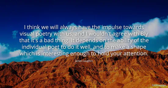 "I think we will always have the impulse towards visual poetry with us, and I wouldn't agree with Bly that it's a bad thing. It depends on the ability of the individual poet to do it well, and to make a shape which is interesting enough to hold your attention"