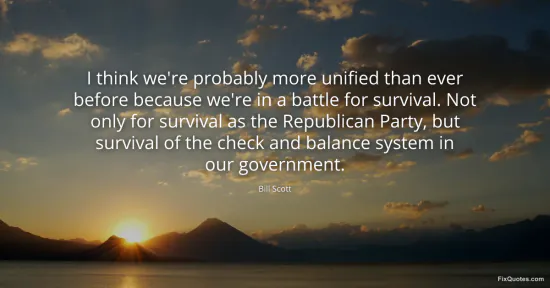 Scott, Bill. (2026, January 16). I think we're probably more unified than ever before because we're in a battle for survival. Not only for survival as the Republican Party, but survival of the check and balance system in our government. FixQuotes. https://fixquotes.com/quotes/i-think-were-probably-more-unified-than-ever-138214/