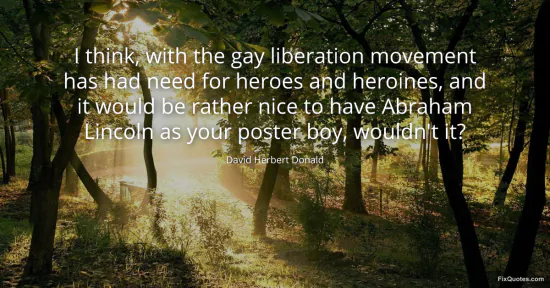 Donald, David Herbert. "I think, with the gay liberation movement has had need for heroes and heroines, and it would be rather nice to have Abraham Lincoln as your poster boy, wouldn't it?" FixQuotes. January 15, 2026. https://fixquotes.com/quotes/i-think-with-the-gay-liberation-movement-has-had-143522/.