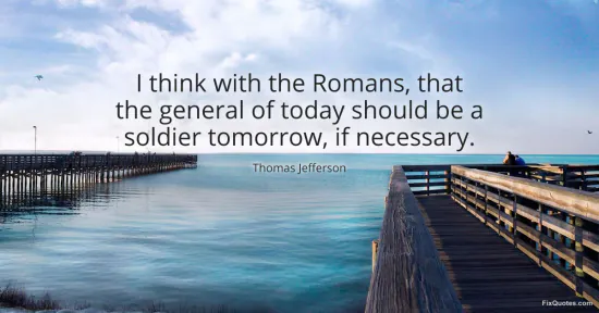 Jefferson, Thomas. "I think with the Romans, that the general of today should be a soldier tomorrow, if necessary." FixQuotes. February 20, 2026. https://fixquotes.com/quotes/i-think-with-the-romans-that-the-general-of-today-27361/.