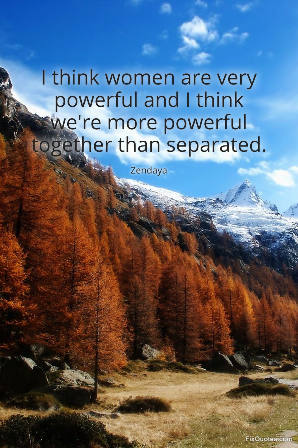 Zendaya. (2026, January 30). I think women are very powerful and I think we're more powerful together than separated. FixQuotes. https://fixquotes.com/quotes/i-think-women-are-very-powerful-and-i-think-were-184667/