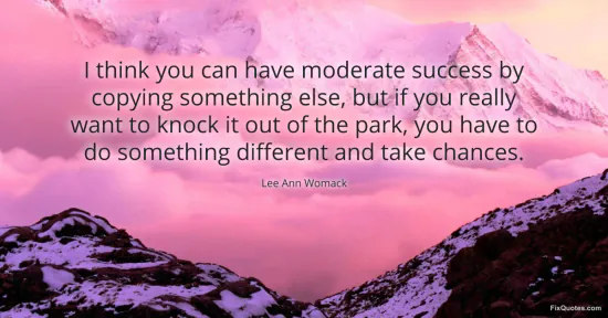 Womack, Lee Ann. (2026, January 15). I think you can have moderate success by copying something else, but if you really want to knock it out of the park, you have to do something different and take chances. FixQuotes. https://fixquotes.com/quotes/i-think-you-can-have-moderate-success-by-copying-146742/