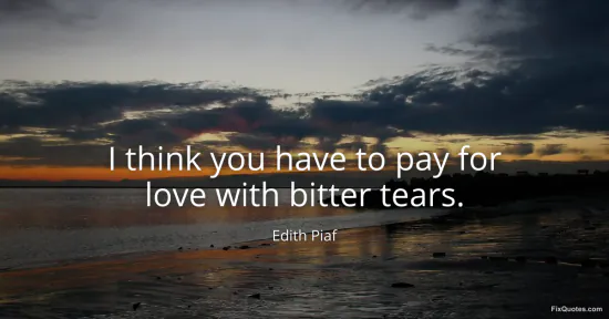 Piaf, Edith. (2026, January 17). I think you have to pay for love with bitter tears. FixQuotes. https://fixquotes.com/quotes/i-think-you-have-to-pay-for-love-with-bitter-tears-57263/