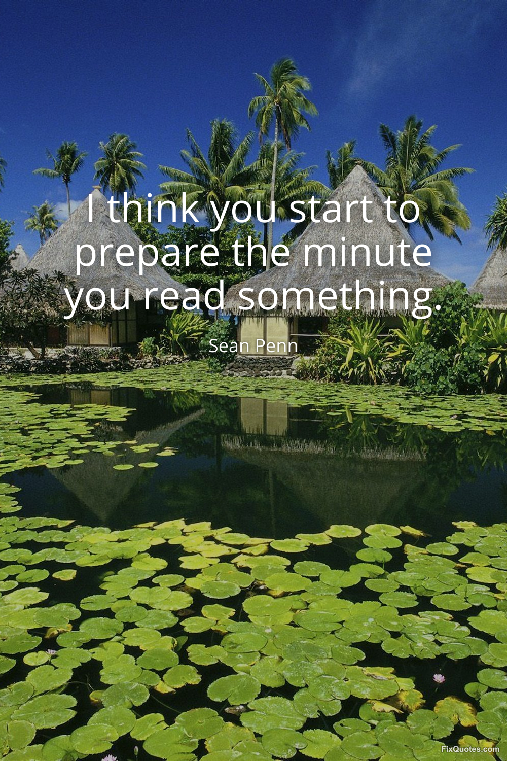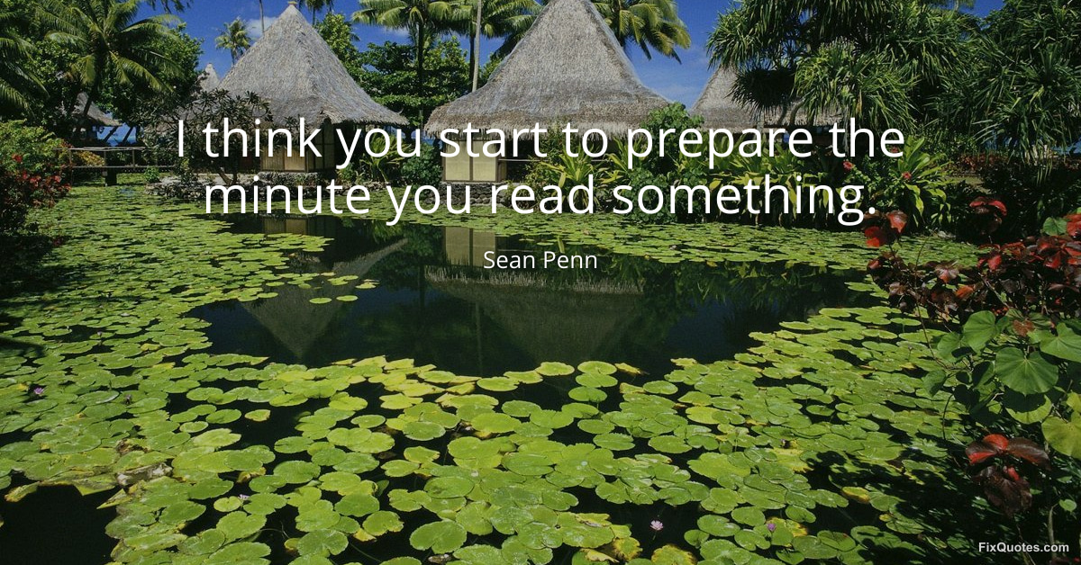 Penn, Sean. "I think you start to prepare the minute you read something." FixQuotes. January 15, 2026. https://fixquotes.com/quotes/i-think-you-start-to-prepare-the-minute-you-read-164542/.