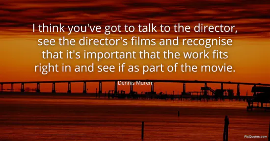 Muren, Dennis. "I think you've got to talk to the director, see the director's films and recognise that it's important that the work fits right in and see if as part of the movie." FixQuotes. January 15, 2026. https://fixquotes.com/quotes/i-think-youve-got-to-talk-to-the-director-see-the-142629/.