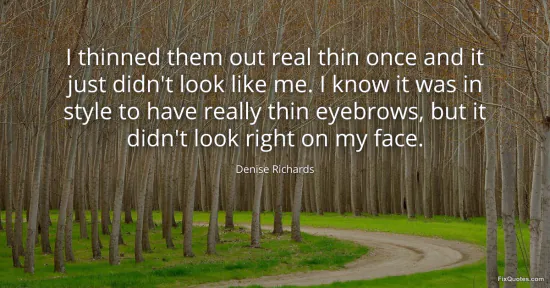 Richards, Denise. "I thinned them out real thin once and it just didn't look like me. I know it was in style to have really thin eyebrows, but it didn't look right on my face." FixQuotes. January 17, 2026. https://fixquotes.com/quotes/i-thinned-them-out-real-thin-once-and-it-just-55669/.
