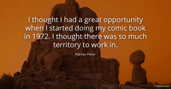 Pekar, Harvey. "I thought I had a great opportunity when I started doing my comic book in 1972. I thought there was so much territory to work in." FixQuotes. January 17, 2026. https://fixquotes.com/quotes/i-thought-i-had-a-great-opportunity-when-i-72861/.
