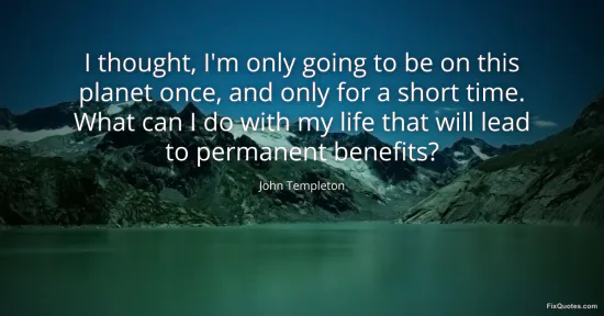 Templeton, John. (2026, January 16). I thought, I'm only going to be on this planet once, and only for a short time. What can I do with my life that will lead to permanent benefits? FixQuotes. https://fixquotes.com/quotes/i-thought-im-only-going-to-be-on-this-planet-once-99869/