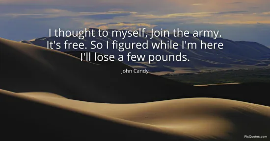 Candy, John. "I thought to myself, Join the army. It's free. So I figured while I'm here I'll lose a few pounds." FixQuotes. January 14, 2026. https://fixquotes.com/quotes/i-thought-to-myself-join-the-army-its-free-so-i-162770/.