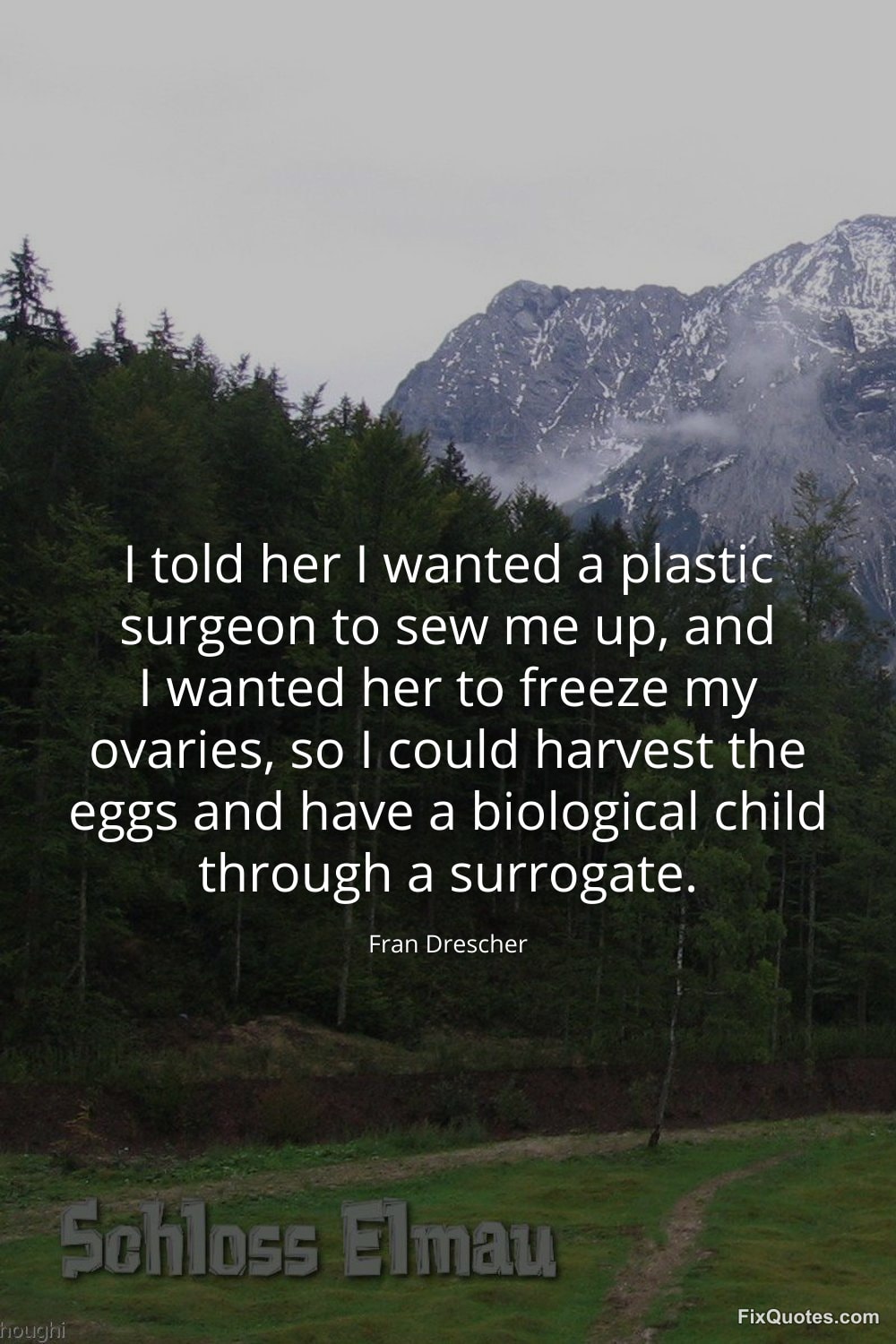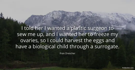 Drescher, Fran. (2026, January 17). I told her I wanted a plastic surgeon to sew me up, and I wanted her to freeze my ovaries, so I could harvest the eggs and have a biological child through a surrogate. FixQuotes. https://fixquotes.com/quotes/i-told-her-i-wanted-a-plastic-surgeon-to-sew-me-45185/