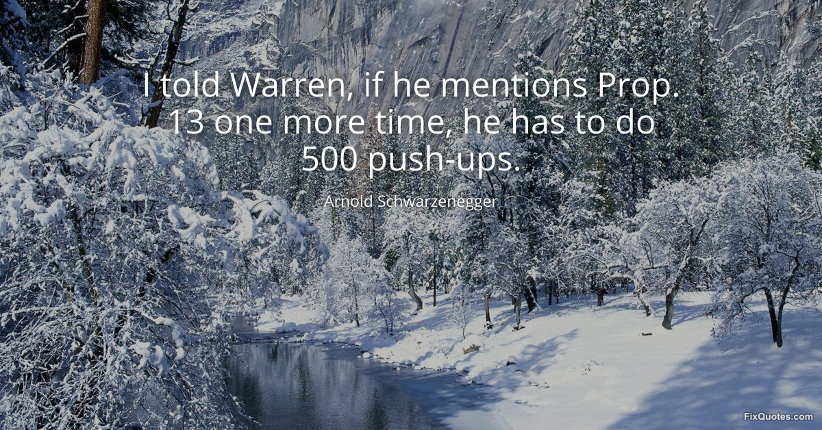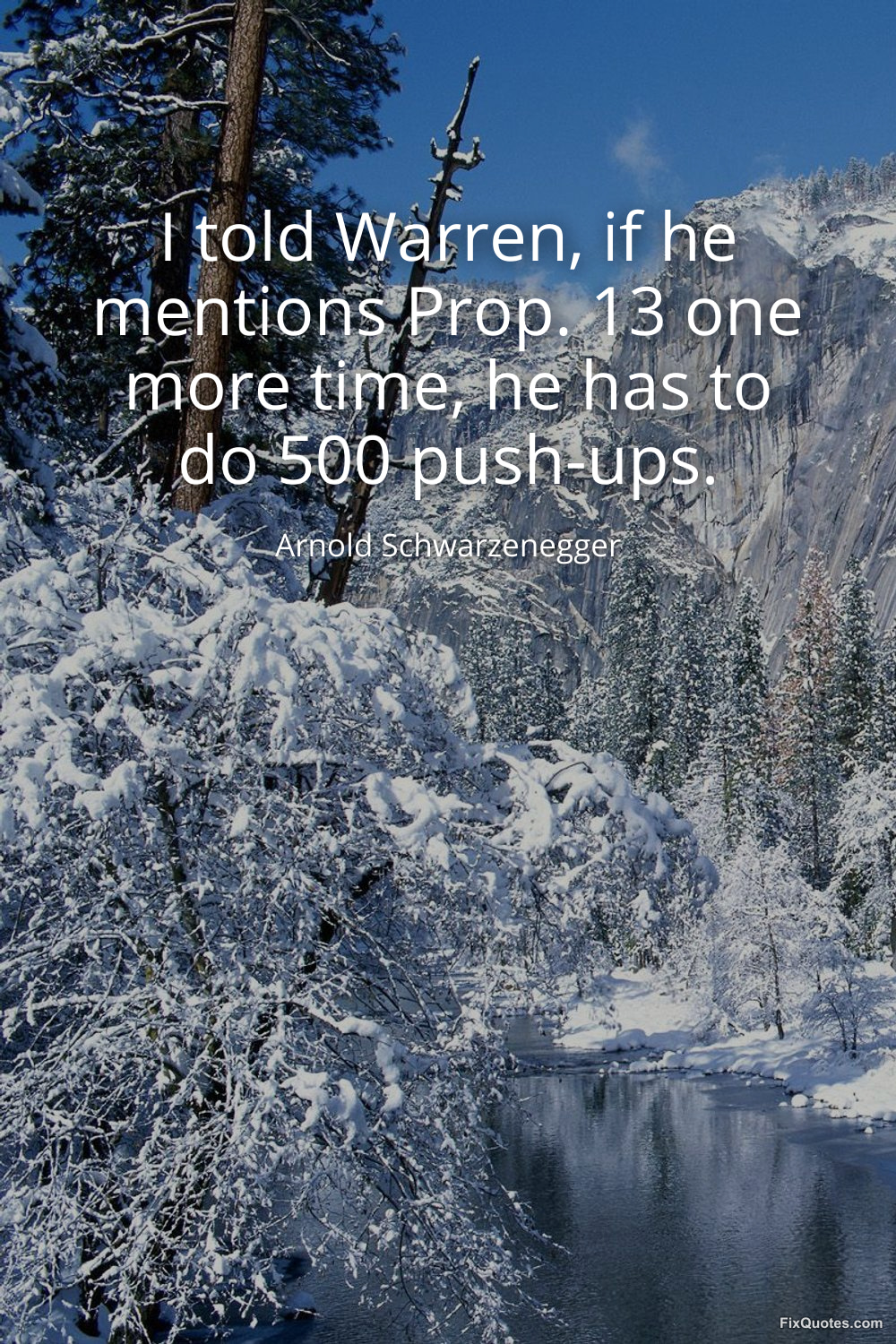 Schwarzenegger, Arnold. (2026, February 20). I told Warren, if he mentions Prop. 13 one more time, he has to do 500 push-ups. FixQuotes. https://fixquotes.com/quotes/i-told-warren-if-he-mentions-prop-13-one-more-18517/