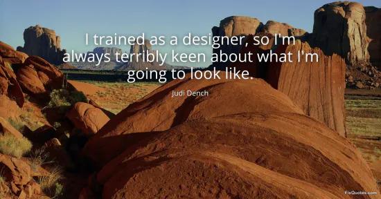 Dench, Judi. "I trained as a designer, so I'm always terribly keen about what I'm going to look like." FixQuotes. Accessed February 2, 2026. https://fixquotes.com/quotes/i-trained-as-a-designer-so-im-always-terribly-19356/.