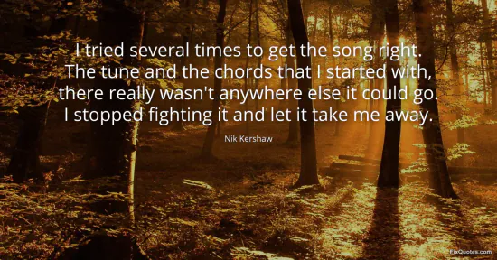 Kershaw, Nik. "I tried several times to get the song right. The tune and the chords that I started with, there really wasn't anywhere else it could go. I stopped fighting it and let it take me away." FixQuotes. January 16, 2026. https://fixquotes.com/quotes/i-tried-several-times-to-get-the-song-right-the-118793/.