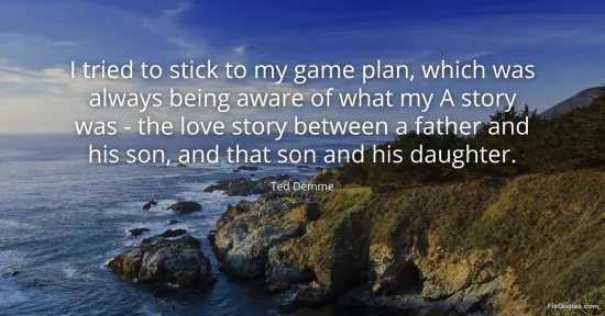 Demme, Ted. (2026, January 16). I tried to stick to my game plan, which was always being aware of what my A story was - the love story between a father and his son, and that son and his daughter. FixQuotes. https://fixquotes.com/quotes/i-tried-to-stick-to-my-game-plan-which-was-always-84746/