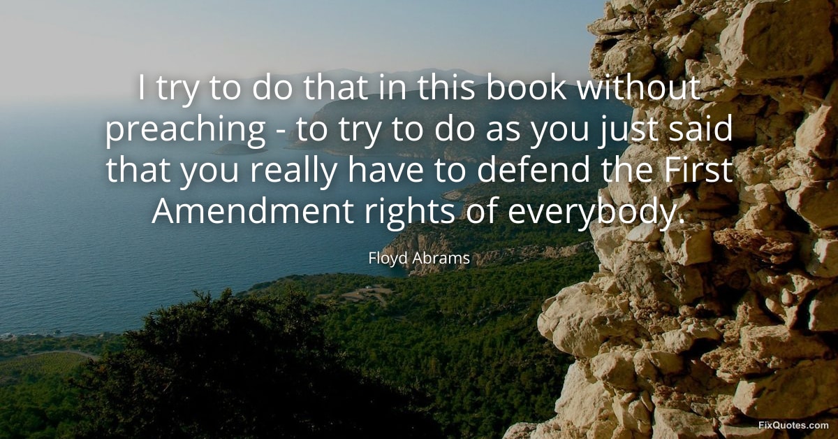 Abrams, Floyd. (2026, January 16). I try to do that in this book without preaching - to try to do as you just said that you really have to defend the First Amendment rights of everybody. FixQuotes. https://fixquotes.com/quotes/i-try-to-do-that-in-this-book-without-preaching-82341/