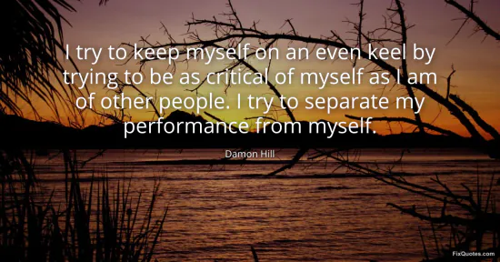 Hill, Damon. (2026, January 17). I try to keep myself on an even keel by trying to be as critical of myself as I am of other people. I try to separate my performance from myself. FixQuotes. https://fixquotes.com/quotes/i-try-to-keep-myself-on-an-even-keel-by-trying-to-43102/
