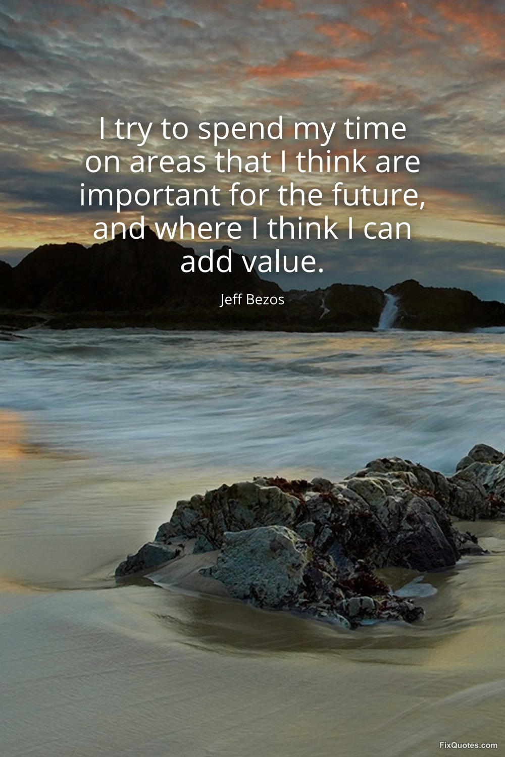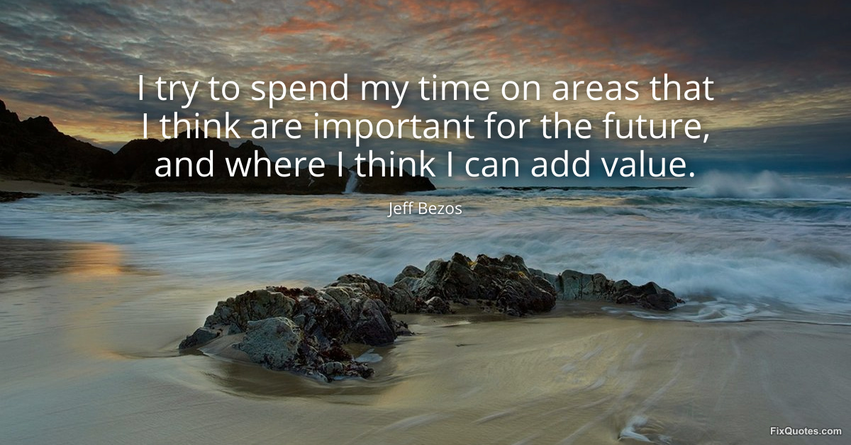Bezos, Jeff. "I try to spend my time on areas that I think are important for the future, and where I think I can add value." FixQuotes. March 25, 2026. https://fixquotes.com/quotes/i-try-to-spend-my-time-on-areas-that-i-think-are-186352/.