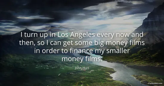 Hurt, John. (2026, January 15). I turn up in Los Angeles every now and then, so I can get some big money films in order to finance my smaller money films. FixQuotes. https://fixquotes.com/quotes/i-turn-up-in-los-angeles-every-now-and-then-so-i-158689/