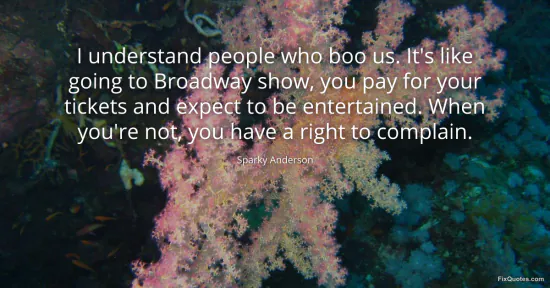 Anderson, Sparky. (2026, January 15). I understand people who boo us. It's like going to Broadway show, you pay for your tickets and expect to be entertained. When you're not, you have a right to complain. FixQuotes. https://fixquotes.com/quotes/i-understand-people-who-boo-us-its-like-going-to-165015/