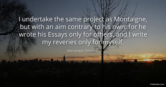 | Source | Jean-Jacques Rousseau, Les Rêveries du promeneur solitaire (Reveries of the Solitary Walker) — commonly cited line contrasting his aim with Montaigne (original French: "Je fais le même projet que Montaigne... il a écrit ses Essais pour les autres, et j'ecris mes Rêveries pour moi seul"). |