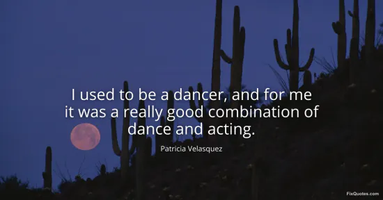 Velasquez, Patricia. (2026, January 16). I used to be a dancer, and for me it was a really good combination of dance and acting. FixQuotes. https://fixquotes.com/quotes/i-used-to-be-a-dancer-and-for-me-it-was-a-really-127568/
