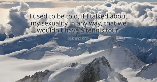 King, Billie Jean. "I used to be told, if I talked about my sexuality in any way, that we wouldn't have a tennis tour." FixQuotes. February 19, 2026. https://fixquotes.com/quotes/i-used-to-be-told-if-i-talked-about-my-sexuality-47600/.