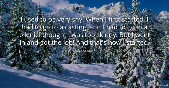 Lima, Adriana. "I used to be very shy. When I first started, I had to go to a casting, and I had to go in a bikini. I thought I was too skinny. But I went in and got the job! And that's how I started." FixQuotes. January 17, 2026. https://fixquotes.com/quotes/i-used-to-be-very-shy-when-i-first-started-i-had-46028/.