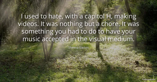 Easton, Sheena. "I used to hate, with a capitol H, making videos. It was nothing but a chore. It was something you had to do to have your music accepted in the visual medium." FixQuotes. January 17, 2026. https://fixquotes.com/quotes/i-used-to-hate-with-a-capitol-h-making-videos-it-77333/.