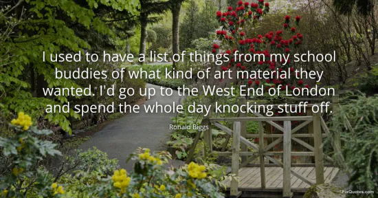 Biggs, Ronald. (2026, January 16). I used to have a list of things from my school buddies of what kind of art material they wanted. I'd go up to the West End of London and spend the whole day knocking stuff off. FixQuotes. https://fixquotes.com/quotes/i-used-to-have-a-list-of-things-from-my-school-129199/