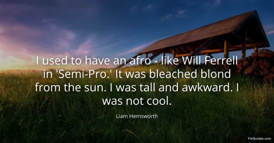 Hemsworth, Liam. (2026, January 15). I used to have an afro - like Will Ferrell in 'Semi-Pro.' It was bleached blond from the sun. I was tall and awkward. I was not cool. FixQuotes. https://fixquotes.com/quotes/i-used-to-have-an-afro-like-will-ferrell-in-172516/