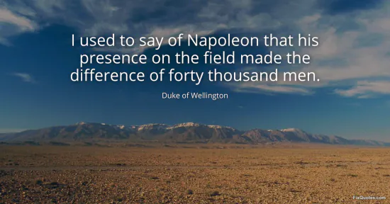Wellington, Duke of. (2026, February 7). I used to say of Napoleon that his presence on the field made the difference of forty thousand men. FixQuotes. https://fixquotes.com/quotes/i-used-to-say-of-napoleon-that-his-presence-on-9552/