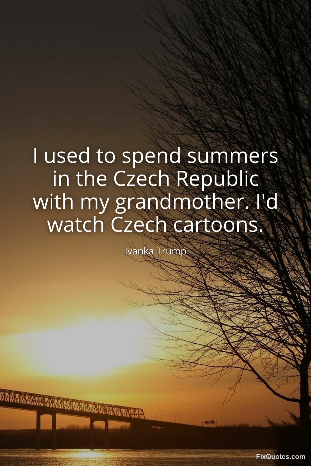 Trump, Ivanka. (2026, January 15). I used to spend summers in the Czech Republic with my grandmother. I'd watch Czech cartoons. FixQuotes. https://fixquotes.com/quotes/i-used-to-spend-summers-in-the-czech-republic-173334/