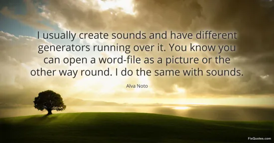 Noto, Alva. (2026, January 16). I usually create sounds and have different generators running over it. You know you can open a word-file as a picture or the other way round. I do the same with sounds. FixQuotes. https://fixquotes.com/quotes/i-usually-create-sounds-and-have-different-108620/