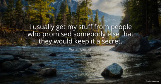 Winchell, Walter. "I usually get my stuff from people who promised somebody else that they would keep it a secret." FixQuotes. January 16, 2026. https://fixquotes.com/quotes/i-usually-get-my-stuff-from-people-who-promised-116518/.