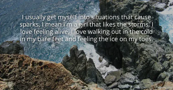 Amos, Tori. (2026, January 15). I usually get myself into situations that cause sparks. I mean I'm a girl that likes the storms. I love feeling alive, I love walking out in the cold in my bare feet and feeling the ice on my toes. FixQuotes. https://fixquotes.com/quotes/i-usually-get-myself-into-situations-that-cause-151540/