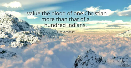 Stuyvesant, Peter. (2026, January 15). I value the blood of one Christian more than that of a hundred Indians. FixQuotes. https://fixquotes.com/quotes/i-value-the-blood-of-one-christian-more-than-that-163700/