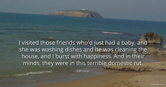 Lucas, Josh. "I visited those friends who'd just had a baby, and she was washing dishes and he was cleaning the house, and I burst with happiness. And in their minds, they were in this terrible domestic rut." FixQuotes. January 17, 2026. https://fixquotes.com/quotes/i-visited-those-friends-whod-just-had-a-baby-and-69534/.