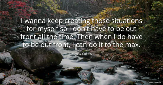 Collins, Bootsy. (2026, January 17). I wanna keep creating those situations for myself so I don't have to be out front all the time. Then when I do have to be out front, I can do it to the max. FixQuotes. https://fixquotes.com/quotes/i-wanna-keep-creating-those-situations-for-myself-66746/